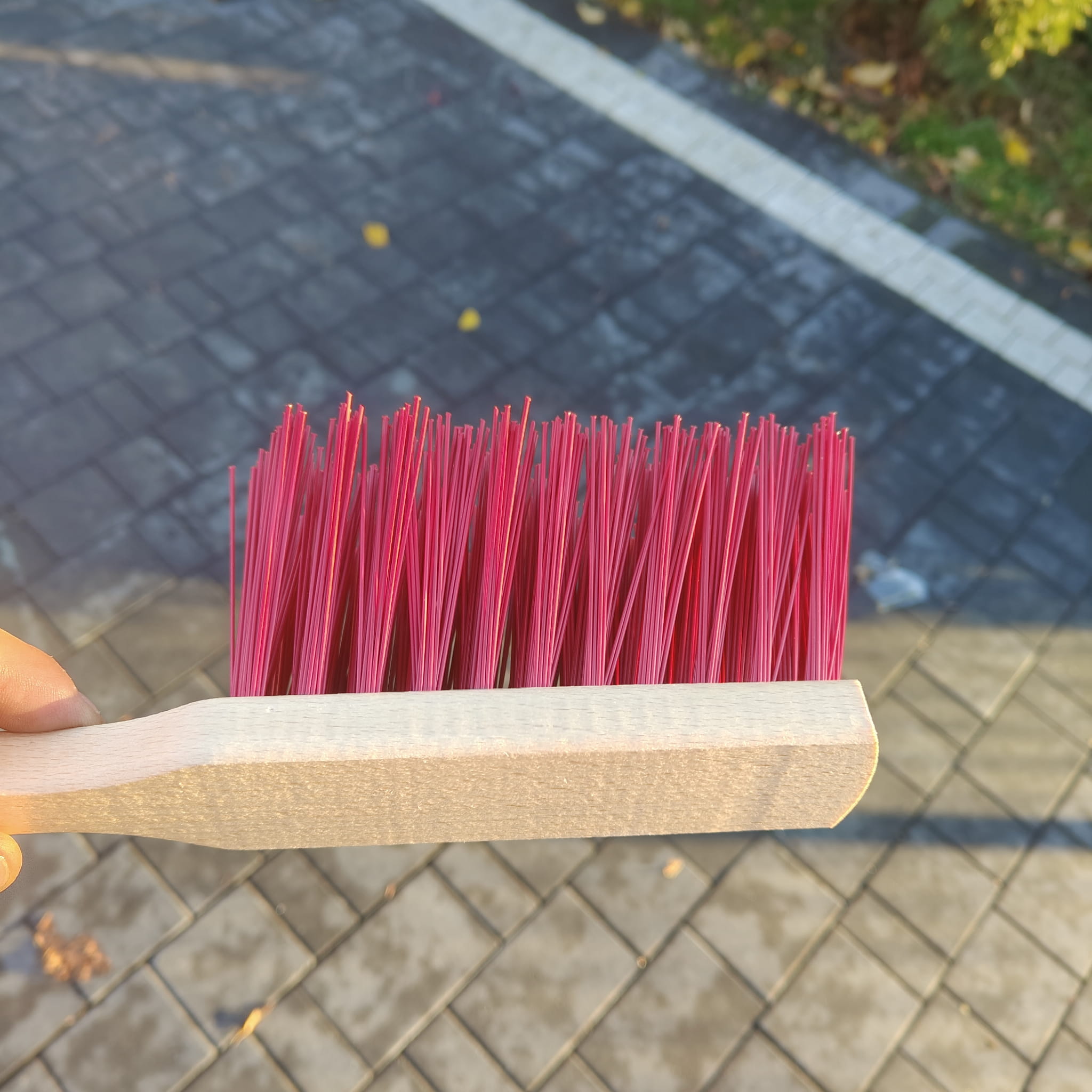 ✅ Twarde włókno PET/PP nabite pod kątem dociera w szczeliny, gdzie nie sięga rękawica